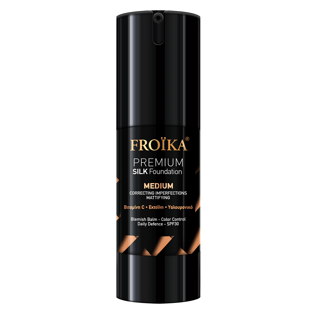 Το Froika Premium Silk Foundation SPF30 διατίθεται σε 3 αποχρώσεις: Light, Medium και Dark. Η pump-airless συσκευασία βοηθά να χρησιμοποιείς την ποσότητα που χρειάζεσαι με ακρίβεια και να διατηρείται η φόρμουλα πιο προστατευμένη κατά τη διάρκεια της χρήσης.